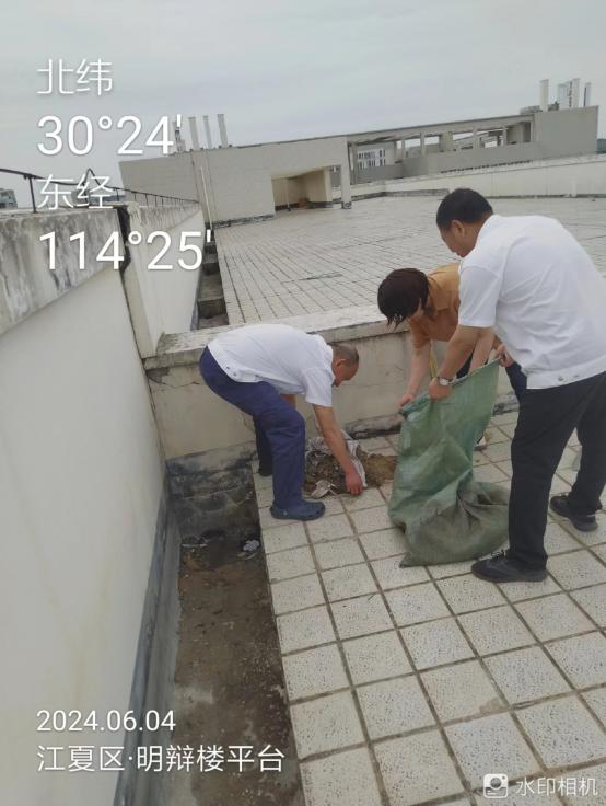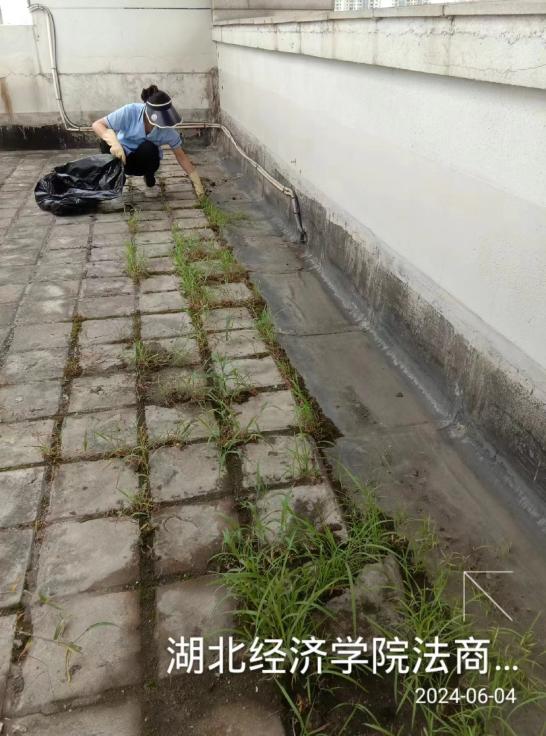 部門統一部署,明確要求,集中對法商綜合樓、德馨樓、教學四號樓、教學五號樓、體育館、圖書館、實驗樓、實訓中心的平臺、露臺、樓頂進行全面清理,清除雜草、垃圾和各類廢棄物,同時對地漏進行疏通,保障下水暢通。