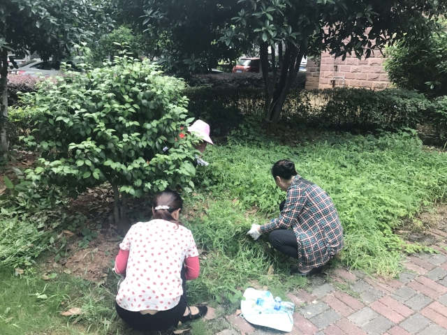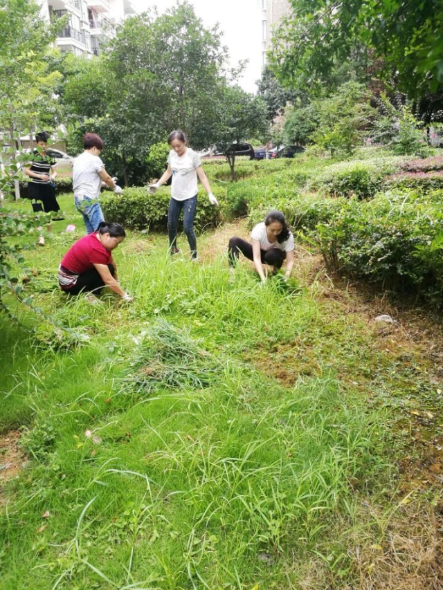 8日清晨6點多,保潔員們陸續到位,大家迅速拿上勞動工具前往各自的責任區域,開始一天的清除雜草工作。烈日驕陽下,大家伙兒揮汗如雨,氣氛熱烈,仿佛回到做農活時的場景,競賽似的卯足了勁兒干。不時會有家屬區居民匆匆路過,看到我們的保潔員們為了汀蘭苑的綠化美觀如此不辭辛苦、汗流浹背的勞動,紛紛點頭致意甚至伸起大拇指,表達自己的贊賞。