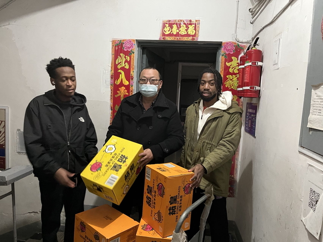 近期我校在核酸檢測中發現陽性病例,學校啟動疫情防控應急預案,進行靜默管理。學校超市關門,物質購置帶來不便,億優物業公司考慮住校留學生的生活,于11月29日對留學生進行慰問,由樓棟公寓管理員溫國慶師傅給每名留學生配送一箱泡面,送上公司對留學生的關心與關愛。