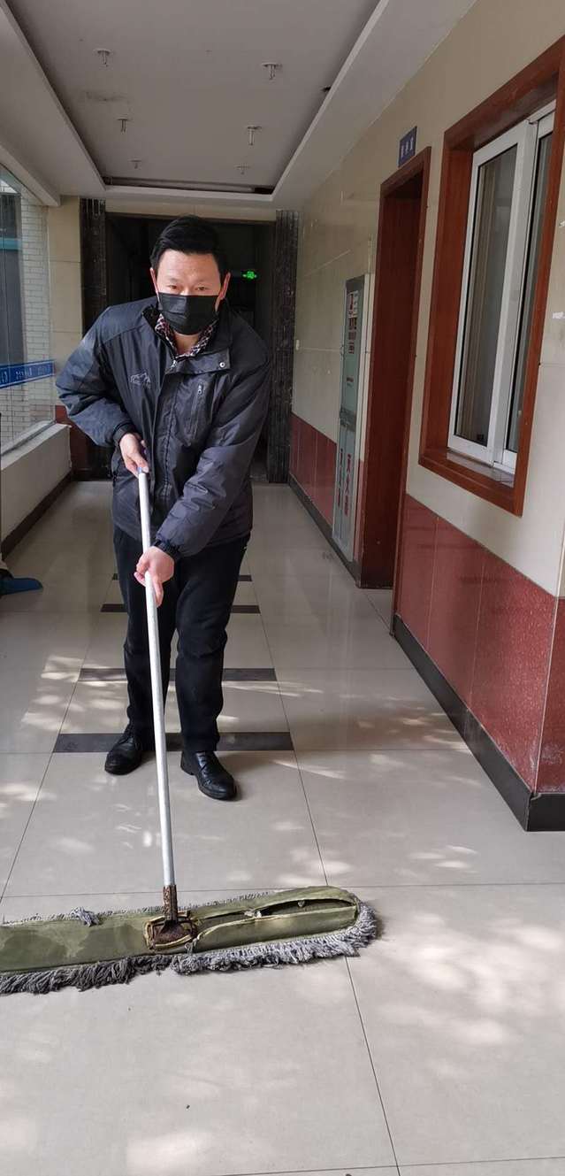 “全國人民萬眾一心奮力共擊疫情,認真嚴格相應國家號召,公司上下一心,共克時艱。待霧霾散去,愿山河無恙,人間皆安。”——西區公寓管理員片長景運武,同時他也兼任疫情期間的消毒工作。