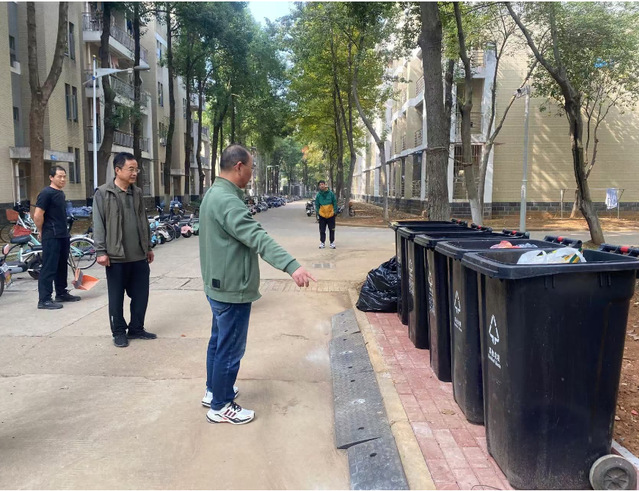 11月1日,公司一行再次前往桂苑學(xué)生公寓,驗收垃圾桶投放點位地面硬化情況、垃圾桶擺放標(biāo)準(zhǔn)及要求等工作。總經(jīng)理楊濤強調(diào):一是及時清理垃圾,杜絕垃圾堆滿落地和垃圾發(fā)酵等現(xiàn)象;二是安裝垃圾桶蓋,確保氣味不外溢;三是距離學(xué)生寢室較近的投放點通過宣傳欄及綠化帶進行阻隔,保障學(xué)生寢室陽臺視野干凈整潔;四是定期清潔垃圾桶,保持潔凈無異味。