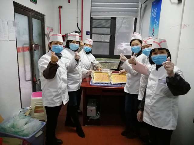 2月17日,公司接到上級(jí)通知,擬征用我校1000間學(xué)生寢室用于疫情防控,公司領(lǐng)導(dǎo)班子成員以上率下,帶領(lǐng)公司139名員工開展隔離點(diǎn)的整理搬遷任務(wù),三天時(shí)間內(nèi)完成了隔離點(diǎn)物品整理,生活用品發(fā)放,環(huán)境保潔,水電空調(diào)保障、門卡和熱水系統(tǒng)檢修等準(zhǔn)備工作。為做好隔離點(diǎn)供餐保障,后廚們每天早上5點(diǎn)多起床備餐,每日兩次的體溫檢測(cè),準(zhǔn)時(shí)準(zhǔn)點(diǎn)為隔離點(diǎn)送去安全健康品種多樣的三餐。2月25日始到4月2日隔離點(diǎn)關(guān)閉,篤行樓累計(jì)供應(yīng)13962份營(yíng)養(yǎng)配餐。江岸區(qū)副區(qū)長(zhǎng)熊俊高度贊揚(yáng)這次隔離點(diǎn)細(xì)致周到的服務(wù)保障,實(shí)現(xiàn)了“無一人確診、無一人疑似、無一人呈陽性”,為疫情防控做出了積極貢獻(xiàn)。