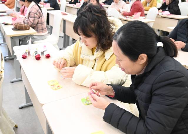 在“珠聯璧合,腕間風華”手串制作環節則充滿了創意與樂趣。活動提前準備好了豐富多樣的手串制作材料,由老師介紹不同材質珠子的特點、寓意以及手串搭配的基本技巧。制作過程中,大家相互交流創意和心得,分享對美的見解,現場氣氛熱烈溫馨。活動尾聲,公司還為每位女性職工發放了一份精美的節日禮品。