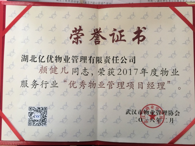 本網訊(通訊員黃玲)3月21日,從武漢市物業管理協會獲悉,公司員工顏健兒、葉世波分別榮獲2017年度物業服務行業“優秀物業管理項目經理”和“優秀物業服務標兵(客服類)”稱號。