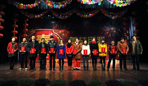 本網訊(通訊員 高瑋)歡聲笑語辭舊歲,載歌載舞迎新春。1月18日下午,億優物業公司2012年年會暨年終總結表彰大會在學術會議中心舉行。副校長魯曉成、副校級領導、校工會主席楊澤榮、院長辦公室、學工處、財務處、后勤集團等部門負責人出席了年會。公司董事長高臘生、總經理楊守平、副總經理陳武、李玲同公司421名員工齊聚一堂,共同見證公司2012年一起走過的日子,展望2013年的美好愿景。