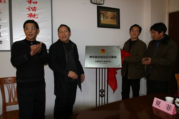 最后,校黨委副書記廖長林,校團委副書記湯中秋,億優公司總經理來靖德和相關院系的負責人共同為“共青團湖北省青年就業創業見習基地”揭牌。