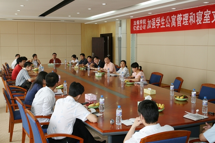 與此同時(shí),億優(yōu)公司副總經(jīng)理陳武帶領(lǐng)公寓服務(wù)部、物業(yè)服務(wù)部、工程維修部負(fù)責(zé)人在法商學(xué)院綜合樓三樓會(huì)議室參加了法商學(xué)院舉行的關(guān)于加強(qiáng)學(xué)生公寓管理和文化建設(shè)座談會(huì),法商學(xué)院副院長黃華、學(xué)工部副主任謝建國、團(tuán)委副書記單敏、各系綜合辦主任8人以及來自不同樓棟學(xué)生代表共13人參加了座談會(huì)。會(huì)上,13名學(xué)生代表對(duì)億優(yōu)公司的各項(xiàng)服務(wù)工作給予了高度評(píng)價(jià),同時(shí),對(duì)維修、保潔及公寓管理等問題提出了問題和建議,各部門負(fù)責(zé)人一一作答。陳武副總經(jīng)理對(duì)同學(xué)們提出的意見和建議進(jìn)行分類匯總并要求相關(guān)負(fù)責(zé)人加強(qiáng)落實(shí),予以解決。最后,法商學(xué)院副院長黃華對(duì)億優(yōu)公司“全心全意全為您“的服務(wù)宗旨給予了充分肯定,并要求同學(xué)們養(yǎng)成良好的生活、學(xué)習(xí)習(xí)慣;愛護(hù)公共財(cái)產(chǎn),共建文明、和諧學(xué)生公寓。