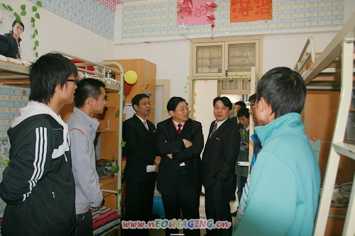 (吳教授在相關人員的陪同下參觀學生公寓)