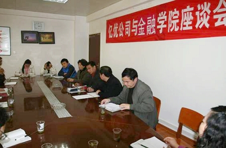 金融學(xué)院分黨委書記解兵說,非常感謝億優(yōu)公司提供本次溝通交流的平臺,今后一定將院系的管理與億優(yōu)公司的優(yōu)質(zhì)服務(wù)緊密結(jié)合起來,共同做好學(xué)生的管理、服務(wù)工作。