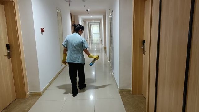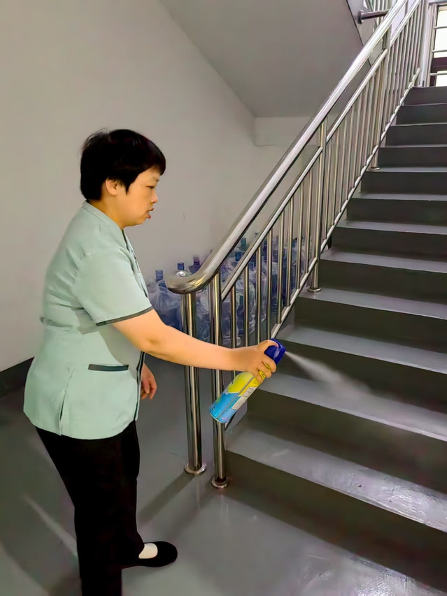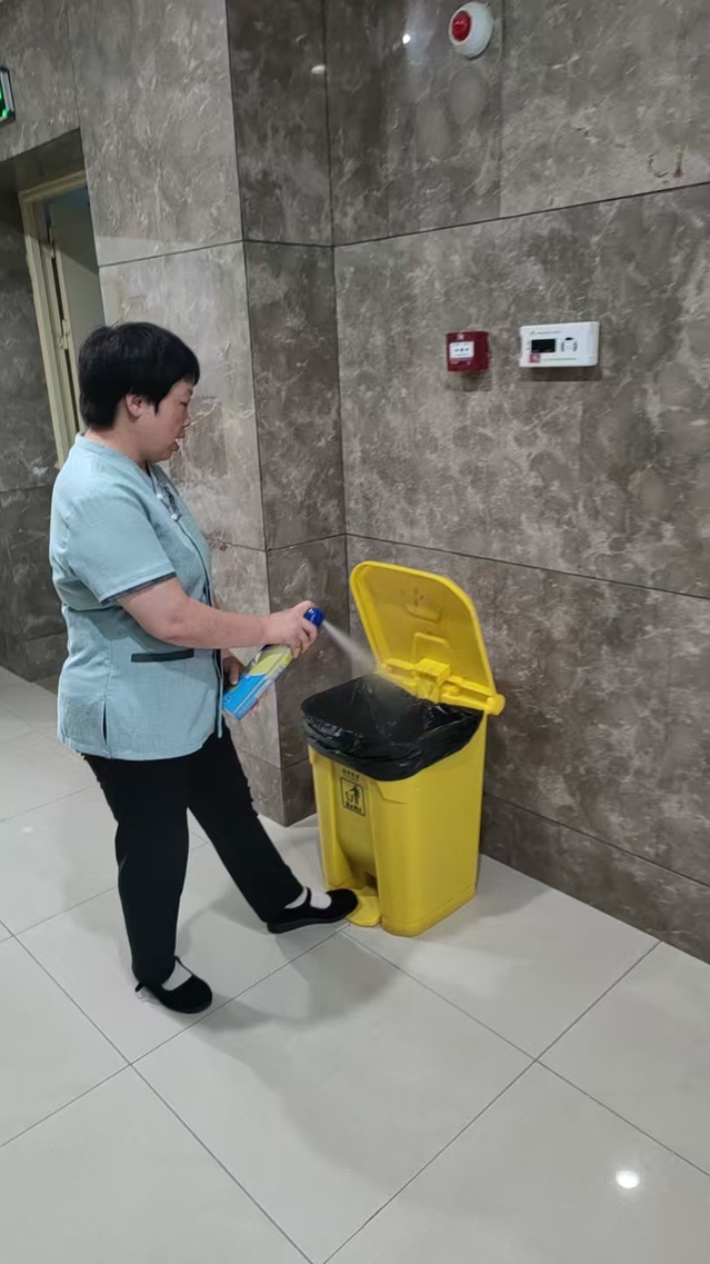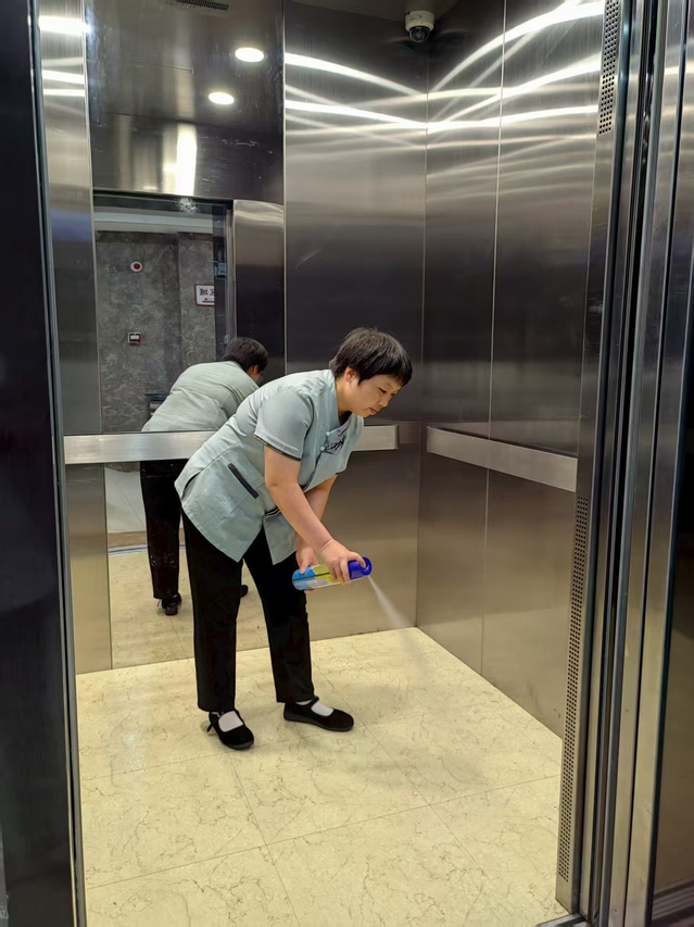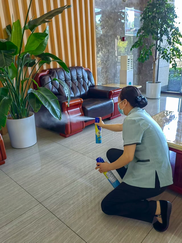 針對基孔肯雅熱通過蚊蟲傳播的特性,中心將責(zé)任區(qū)域消殺作為防控核心,對樓道、會議室、大廳、餐廳等人員密集場所實(shí)施高頻次消殺作業(yè),確保不留防控死角。為強(qiáng)化防控效果,中心還對電梯轎廂、衛(wèi)生間等重點(diǎn)區(qū)域?qū)嵭忻咳障麣⒅贫?,重點(diǎn)清潔電梯按鈕、門把手等高頻接觸部位,最大限度降低病毒傳播風(fēng)險(xiǎn)。結(jié)合愛國衛(wèi)生運(yùn)動,中心同步開展環(huán)境衛(wèi)生整治行動,組織人員疏通堵塞排水溝、及時(shí)清理外圍枯枝落葉,從源頭上消除蚊蟲滋生環(huán)境。