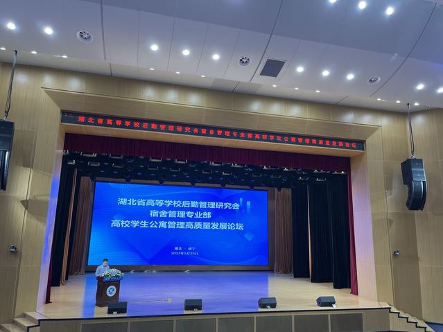 高校學生公寓管理高質量發展論壇由省宿專部常委、華中農業大學資產經營與后勤保障部副部長陳生根主持。會上,武漢大學方愛平、中國地質大學賀亞鋒、湖北工程學院楊志萍、湖北科技學院專永安分別作主題演講,全體參會代表參觀了湖北科技學院學生宿舍。