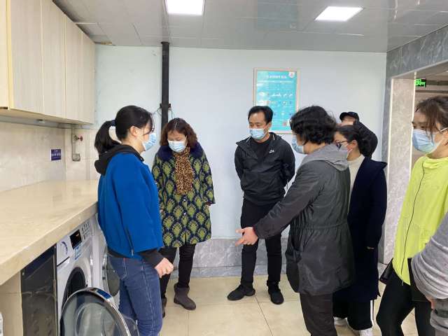 檢查組一行人還來到了生活功能間,校醫(yī)院陳醫(yī)生詢問了洗衣機等生活設(shè)施的消殺情況。更對如何規(guī)范化消殺洗衣機等設(shè)施做了具體要求。