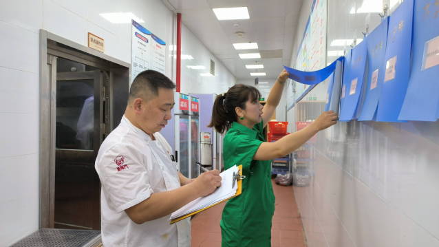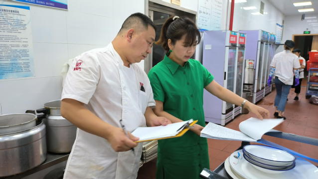 在接待服務中心主任黎德琴、副主任張錦的帶領下,中心各相關職能部門負責人對篤行樓及國際學術交流中心進行了全面、細致的檢查,重點檢查了食品安全衛生和消防設施設備安全。食品安全方面,主要查看了后廚從業人員健康證、餐具消毒、生熟食品存放、原材料生產日期及存儲、燃氣管道定期檢修及日常臺賬。消防設施設備安全方面,重點查看了區域內消防栓等設施設備使用情況,監控室人員日常工作情況。對存在的細節不足之處當場提出了整改意見,要求即刻完善,抓好整改落實。