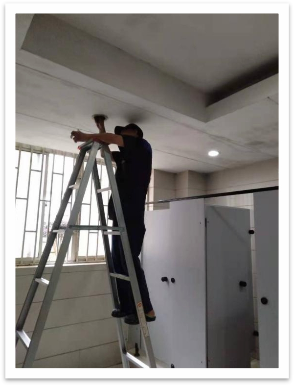 圖書館二樓、三樓167盞臺燈檢查維修,工程劉師傅中午加班也要修完,以保證學生們晚上看書光線充足,不傷眼睛,溫暖的燈光照亮著學生們求知的路。