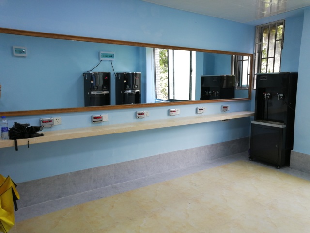 后的生活服務(wù)功能間裝飾一新,淡藍(lán)色的墻面,淡黃色的地磚和大理石臺(tái)面,格外清新、雅致;整面電吹風(fēng)臺(tái)上鏡子,映襯在燈光下格外光亮;擺放整齊有序的滾筒洗衣機(jī)、烘干機(jī)、洗衣機(jī)、開(kāi)水器、凈水器,格外便捷、實(shí)用。除了生活服務(wù)功能間,億優(yōu)公司還以西區(qū)部分學(xué)生公寓為試點(diǎn),對(duì)學(xué)生公寓大廳進(jìn)行了改造。公寓大廳進(jìn)行了修繕、刷白、裝飾,增配了公寓導(dǎo)詢臺(tái)、休息座椅,放置了綠植,讓人感覺(jué)無(wú)比溫暖、舒適,有“家”的感覺(jué)。