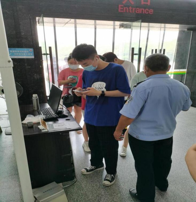 在圖書館入口處和出口處,工作人員進行體溫檢測,憑健康碼通行,督促師生做好科學防護及消毒,做好崗位登記及安全匯報。