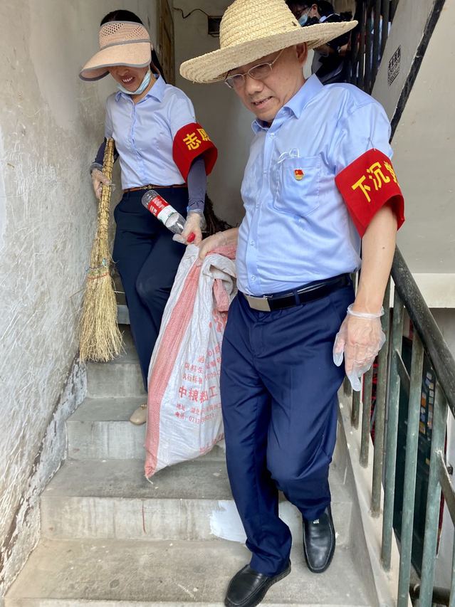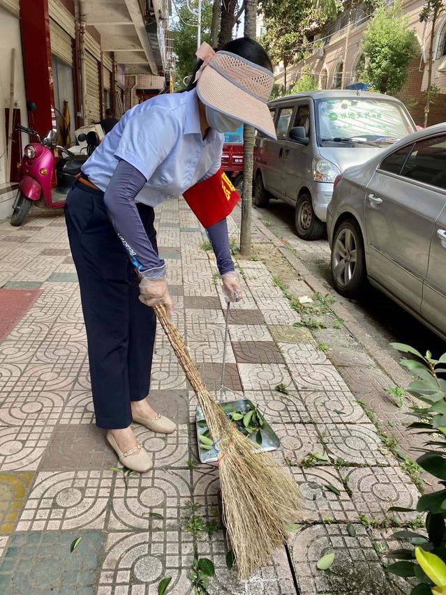 在西港社區工作人員的指引下,根據小區現狀,幫扶工作分成多個工作小組,在小區內分別開展綠化修剪、環境消殺、樓道垃圾清理等幫扶活動,為盡快完成幫扶內容,改善老舊小區品質,幫扶人員頂著35℃高溫,按各自分工開始行動。