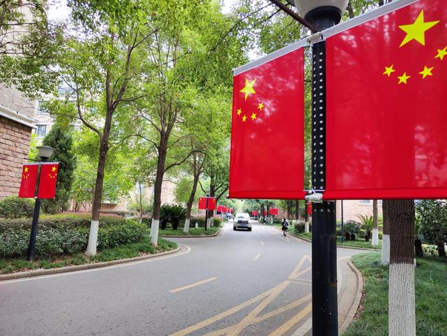 五星紅旗迎風飄揚,既莊重又喜慶,遠遠望去,懸掛好的國旗整齊劃一,彰顯著最美的中國紅。迎雙節,掛國旗,不僅扮靚了小區,成為一道靚麗的風景線,也讓師生們提前感受到了濃厚的節日氛圍。