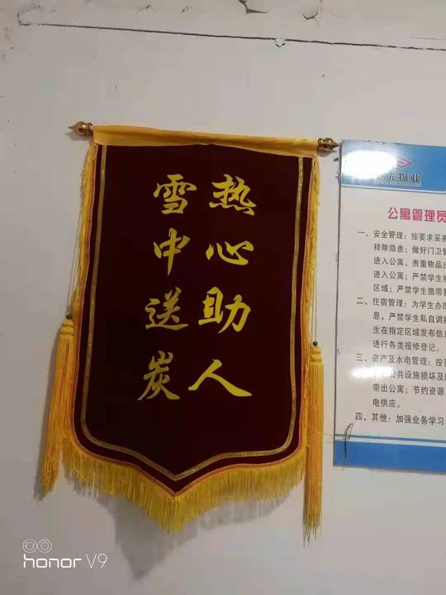王睿同學在手機失而復得后十分感動,她非常感謝這位好心的管理員叔叔。事后,她主動送了一面錦旗向助人為樂的叔叔表達感謝,錦旗中這樣寫到:“雪中送炭,樂于助人”。正是因為這種樂于助人的精神,讓同學感受到了溫暖,感受到了正能量!
