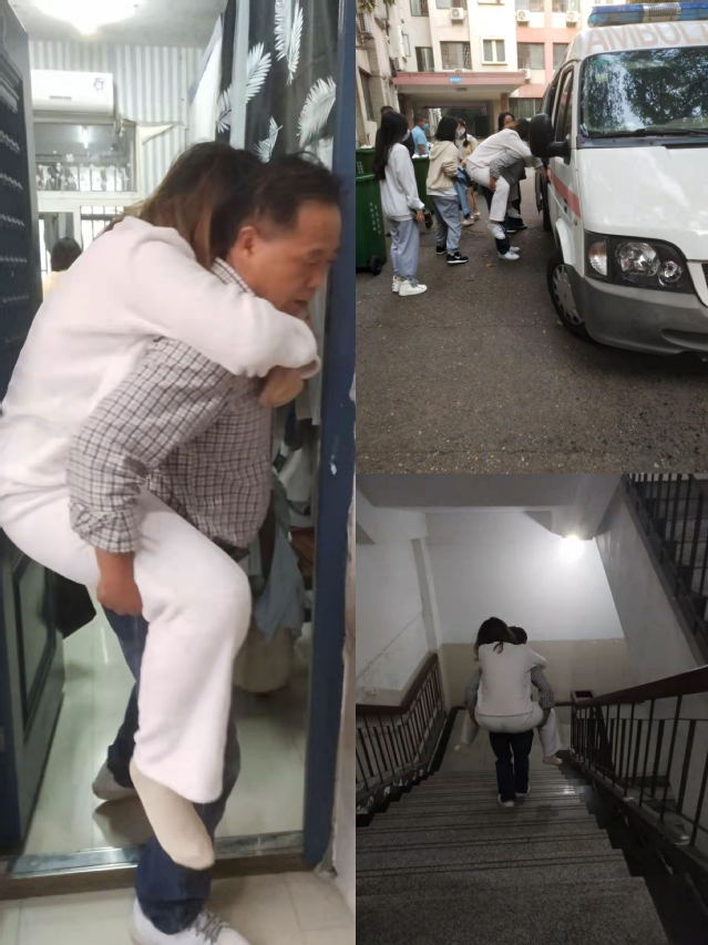11月2日早上8:10分,住在東區公寓桔九的一位女同學因為身體原因,臉色蒼白四肢無力,無法走路。桔九管理員易以平聞訊后,立即趕到二樓將她背下樓,隨后其室友將她送至醫院。