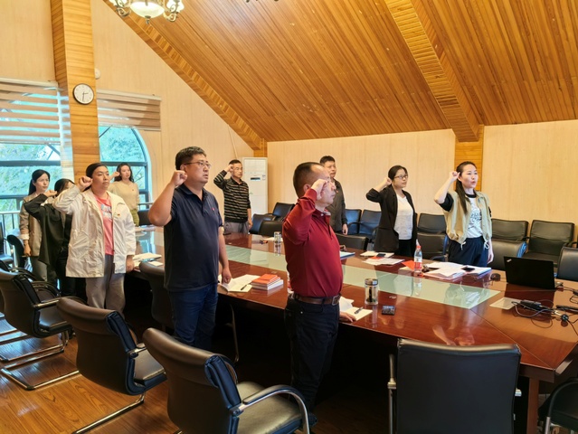 會上,全體黨員佩戴黨員徽章,交納黨費,重溫入黨誓詞。黨支部組織委員兼紀檢委員王宣錦同志領學了《中國共產黨章程》第23頁至第31頁、《習近平新時代中國特色社會主義思想專題摘編》第103頁至第134頁內容。黨支部書記賈學峰帶頭領學了學習貫徹習近平總書記有關主題教育最新重要講話精神和學習貫徹習近平總書記教師節重要指示精神。