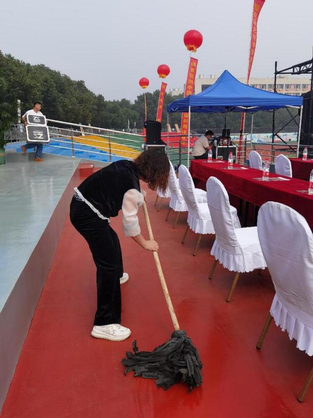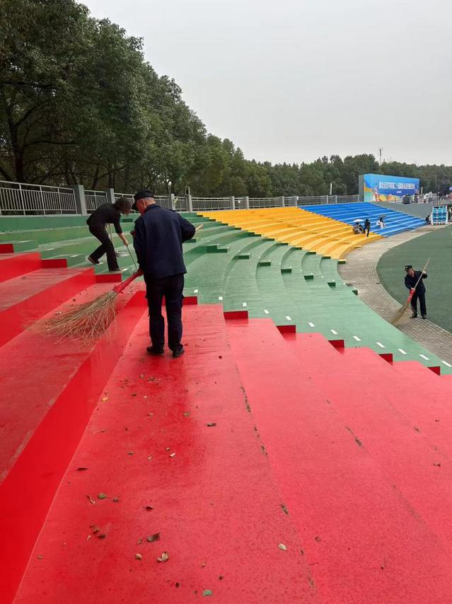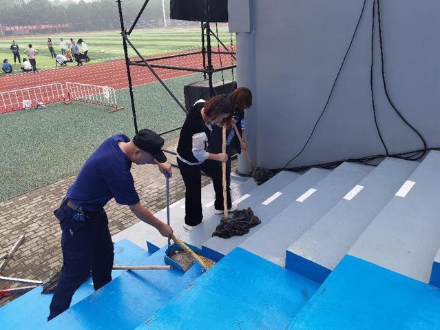 物業(yè)服務(wù)部項(xiàng)目管理一部在運(yùn)動(dòng)會(huì)召開(kāi)前半個(gè)月便集中開(kāi)展西區(qū)田徑運(yùn)動(dòng)場(chǎng)、體育館的環(huán)境專(zhuān)項(xiàng)整治工作,重點(diǎn)對(duì)運(yùn)動(dòng)場(chǎng)看臺(tái)、主席臺(tái)、公共洗手間、垃圾桶存放處等區(qū)域進(jìn)行細(xì)節(jié)保潔,對(duì)整個(gè)運(yùn)動(dòng)場(chǎng)進(jìn)行地毯式?jīng)_洗清掃。加強(qiáng)巡查,規(guī)范體育館門(mén)口非機(jī)動(dòng)車(chē)輛停放秩序。運(yùn)動(dòng)會(huì)期間,增加保潔巡查頻次,做好運(yùn)動(dòng)場(chǎng)清潔維護(hù)工作。運(yùn)動(dòng)會(huì)結(jié)束后,組織員工第一時(shí)間清理現(xiàn)場(chǎng)垃圾,恢復(fù)運(yùn)動(dòng)場(chǎng)原貌,確保后續(xù)教學(xué)不受影響。