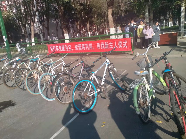 12月17日,部門組織維修人員對(duì)尚可使用的自行車進(jìn)行維修,貼上“尋找新主人”的標(biāo)識(shí)。在東、西區(qū)操場(chǎng)舉行自行車認(rèn)領(lǐng)儀式。把修好的自行車發(fā)放給有需要的同學(xué),既美化了環(huán)境,又解決了同學(xué)的出行問題。