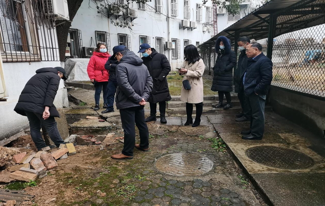 在聽取了市內家屬區2021年安全工作落實情況及2022年市內家屬區安全重點工作部署后,黨總支書記王水斌一行對家屬區配電設施、消防設施、電氣線路、供水管道等進行了檢查,對墻縫開裂等安全隱患進行了現場查看,并提出整改要求。
