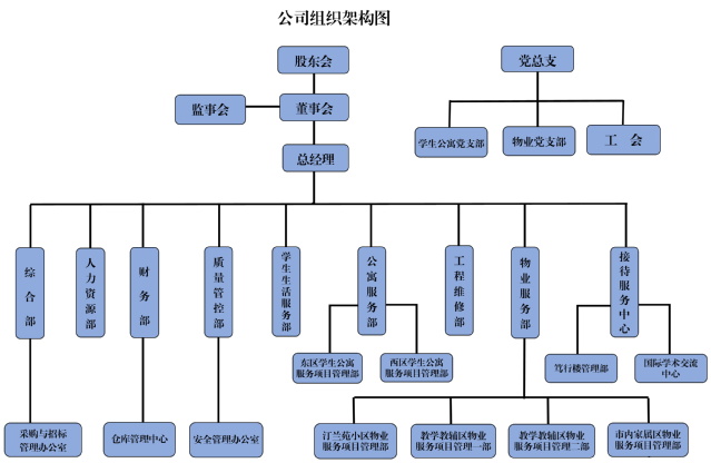 調(diào)整后公司部門(mén)組織架構(gòu)體系更為清晰,現(xiàn)內(nèi)設(shè)綜合部、財(cái)務(wù)部、人力資源部、質(zhì)量管控部、工程維修部、公寓服務(wù)部、學(xué)生生活服務(wù)部、物業(yè)服務(wù)部、接待服務(wù)中心共九個(gè)部門(mén)。此次組織架構(gòu)調(diào)整,優(yōu)化了資源配置,是推動(dòng)公司治理體系優(yōu)化升級(jí)、提質(zhì)增效的重要舉措。
