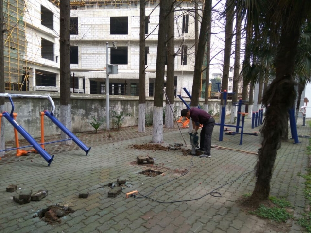 本通訊(通訊員黃婉)2017年2月15日上午,洪山家屬區老干活動室旁的健身器材全部進行了拆除和換新。