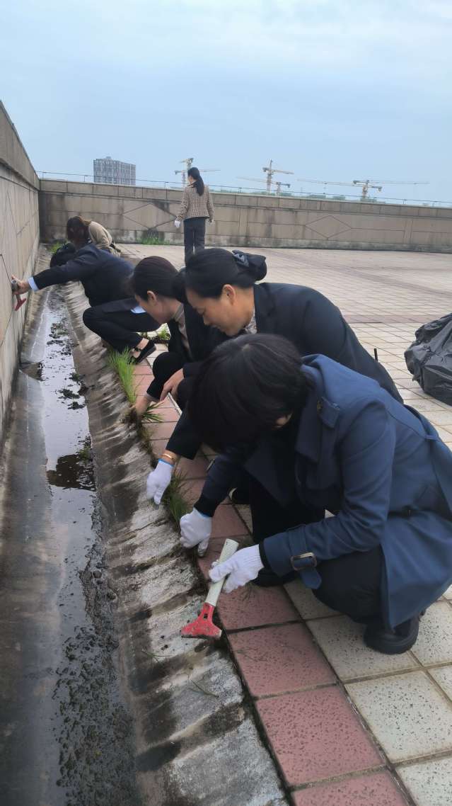本網(wǎng)訊(通訊員 王燕)梅雨期將至,為保障服務(wù)區(qū)域樓頂平臺(tái)下水管道的通暢,接待服務(wù)中心于4月10日開展了樓頂平臺(tái)雜草、淤泥的清理工作。
